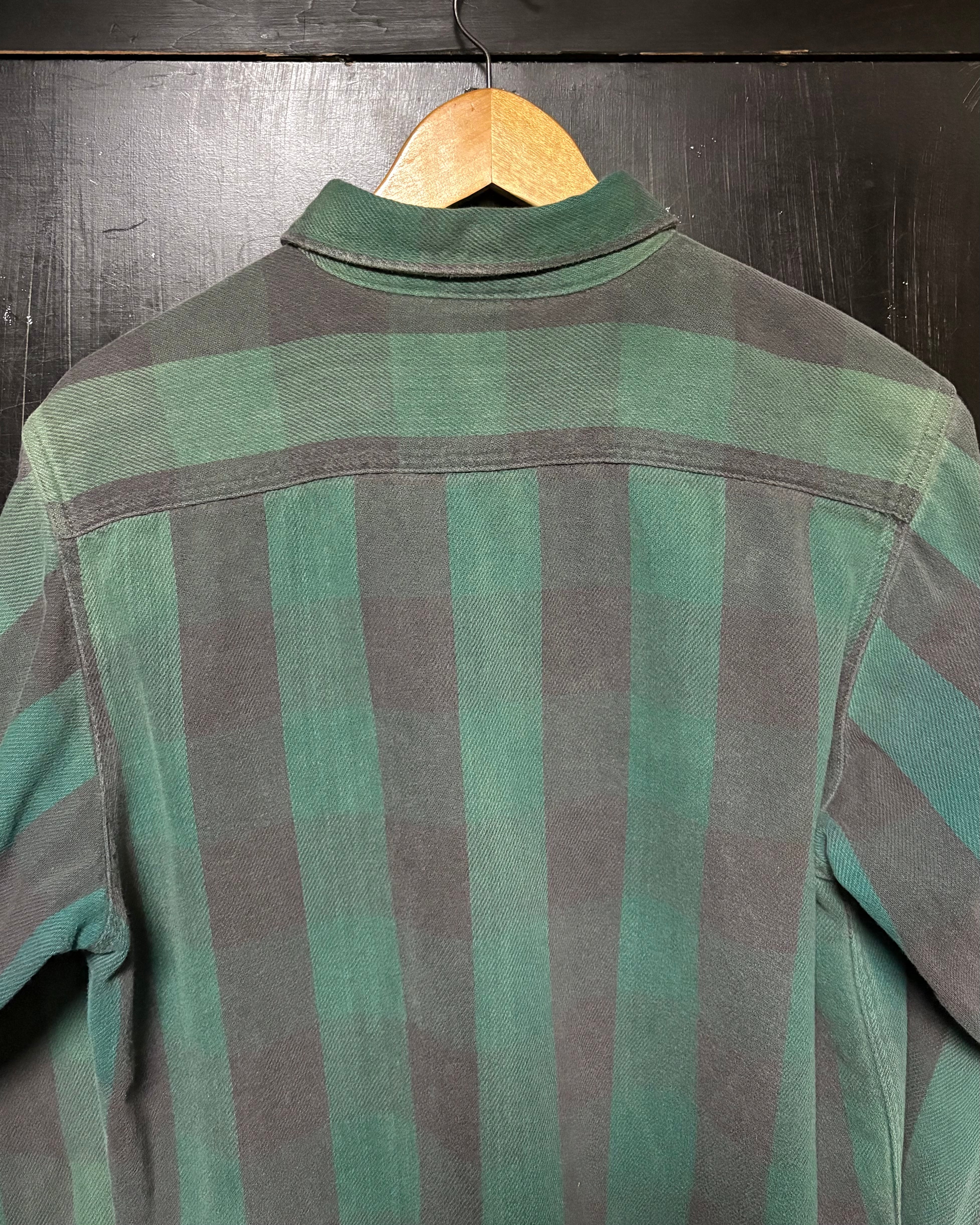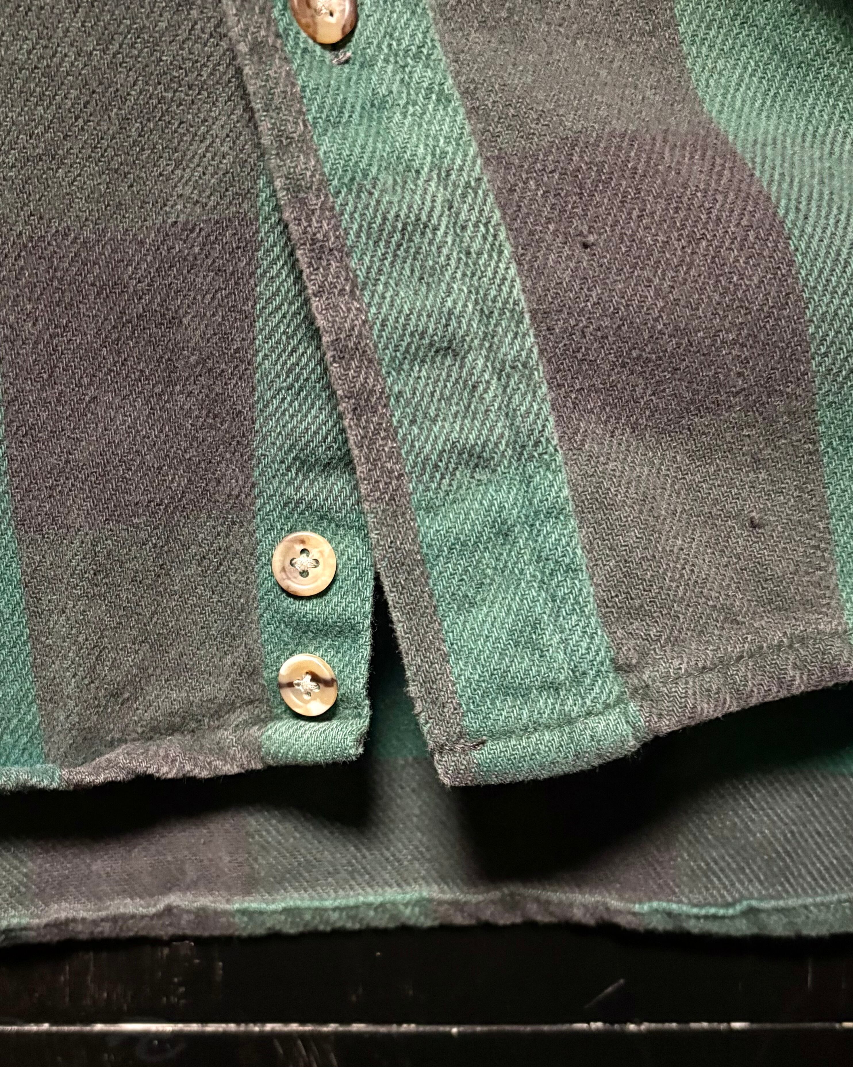 パッと見、ぶっといストライプな深緑×黒のバッファローチェック柄◎