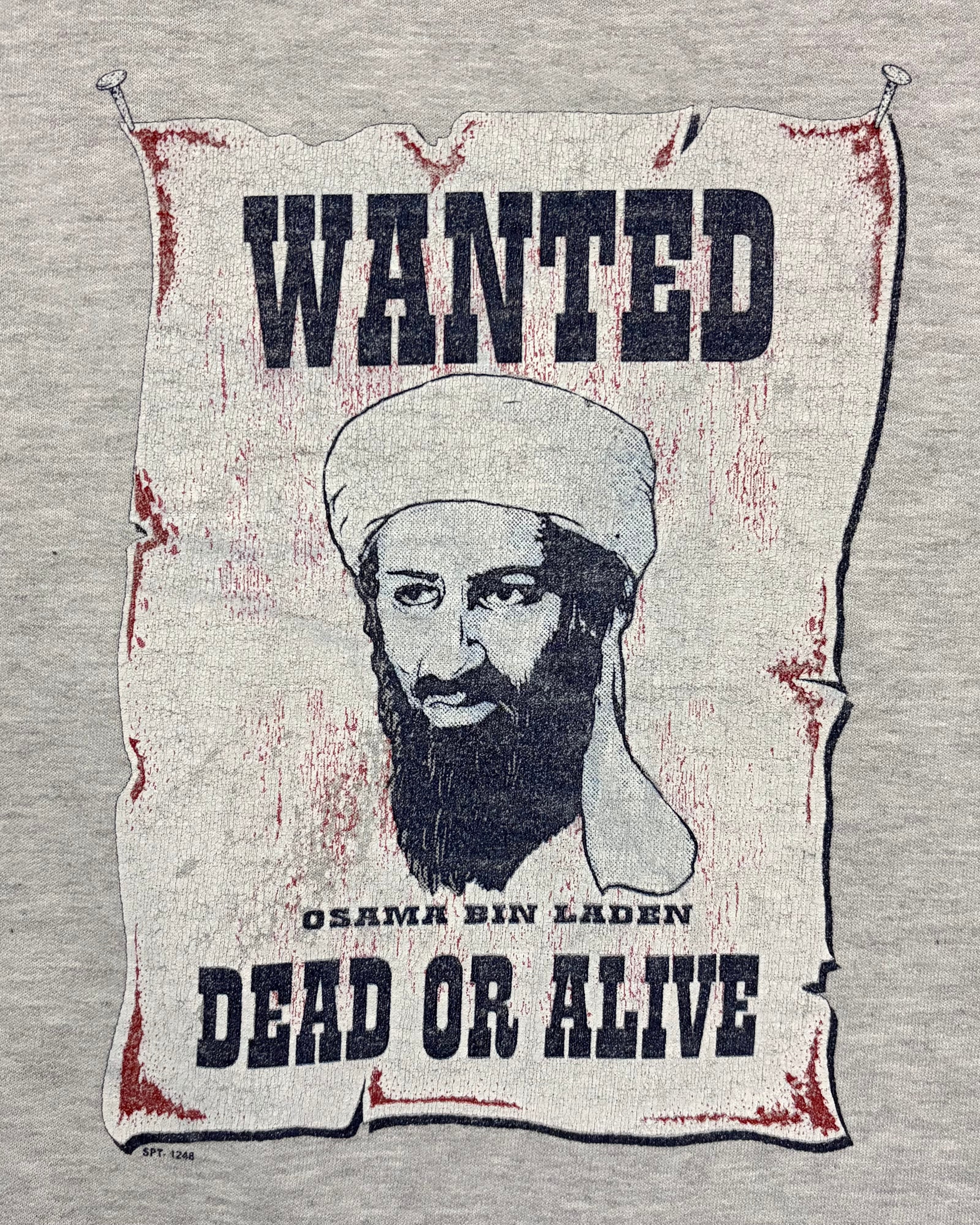 00年代頃製のウサーマ・ビン・ラーディン指名手配書スウェットです。