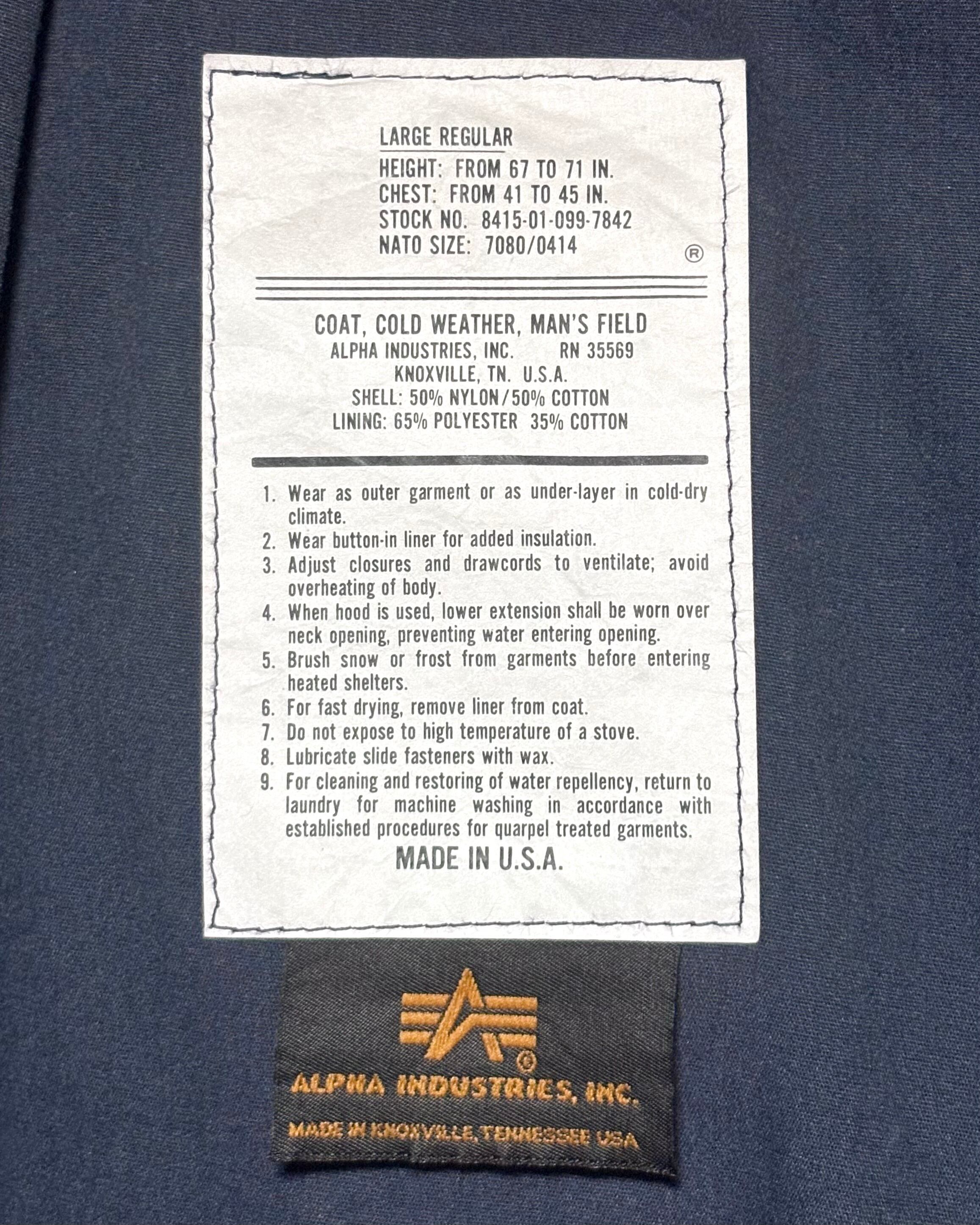 90年代頃製のアルファ・インダストリーズ、M-65ネイビーです。