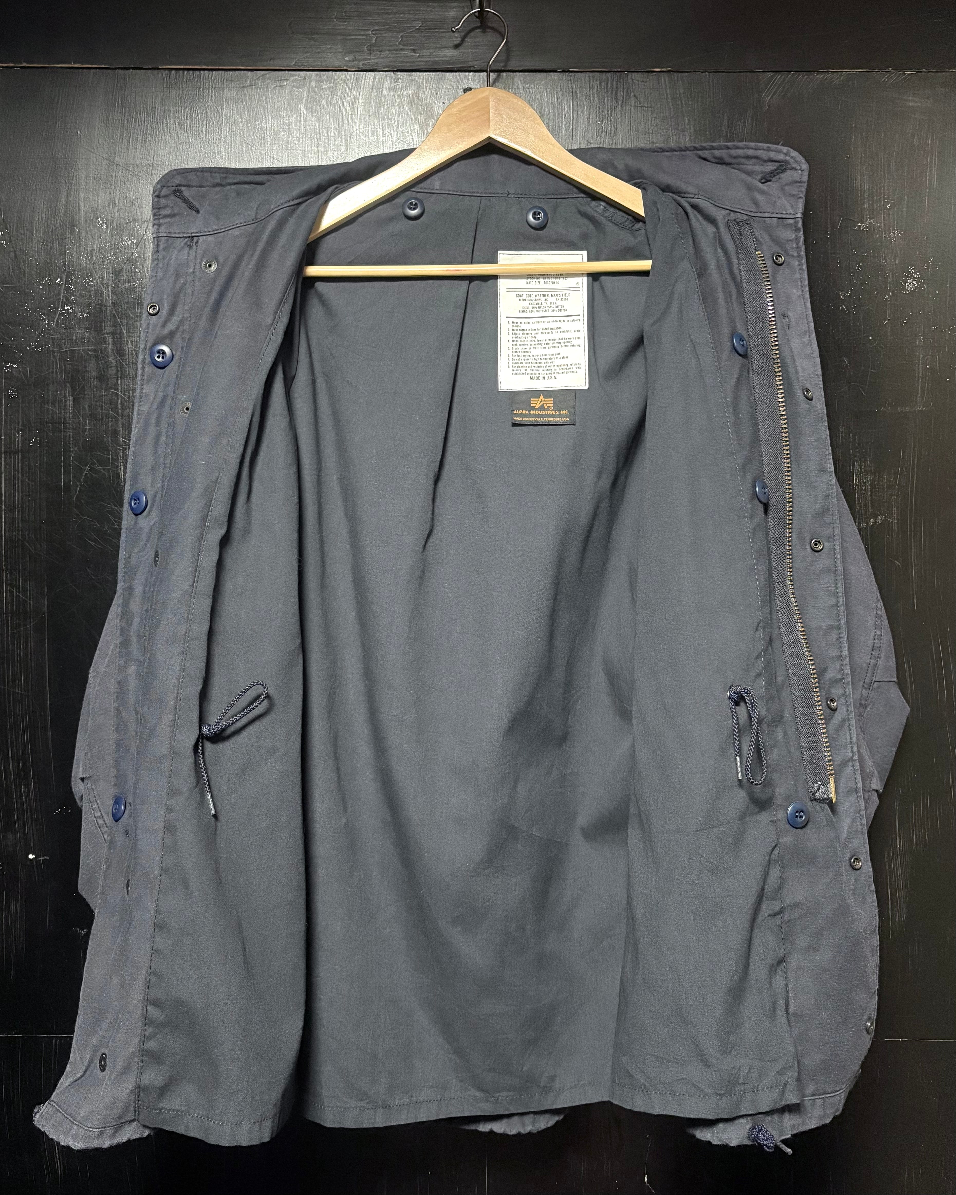 米軍のコントラクターでもあるアルファ社製の、実際に軍では採用されていないストリート仕様なネイビーのM-65。