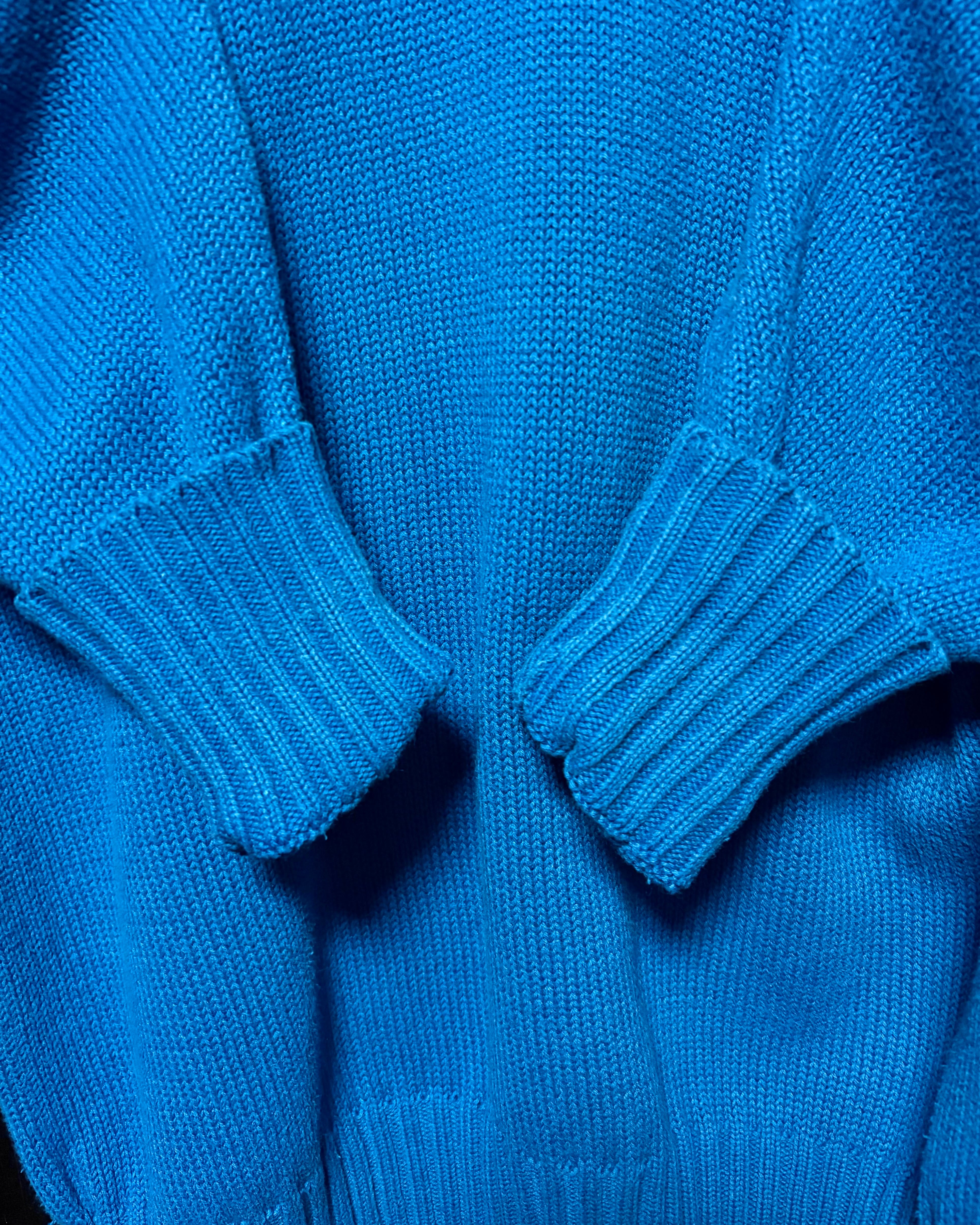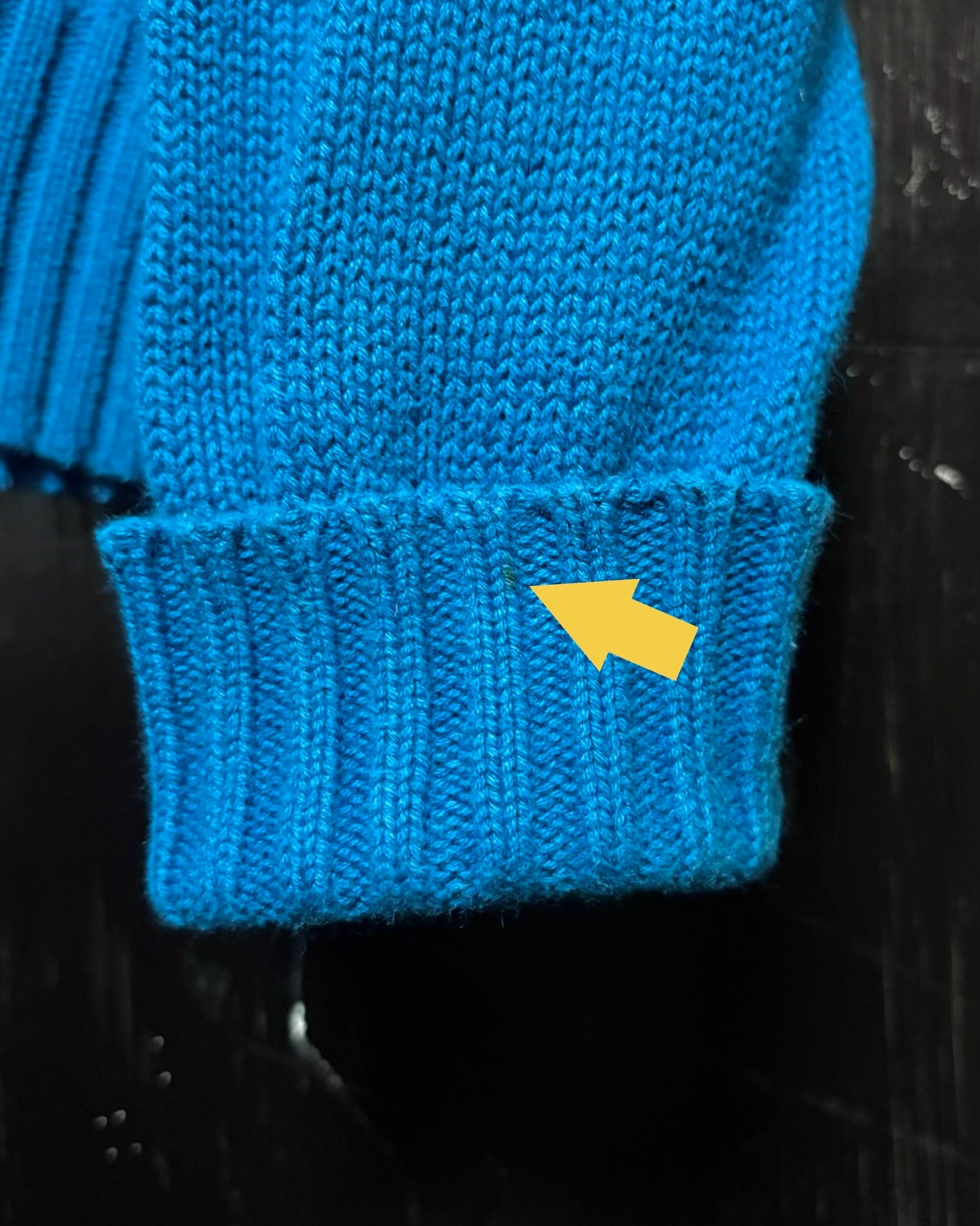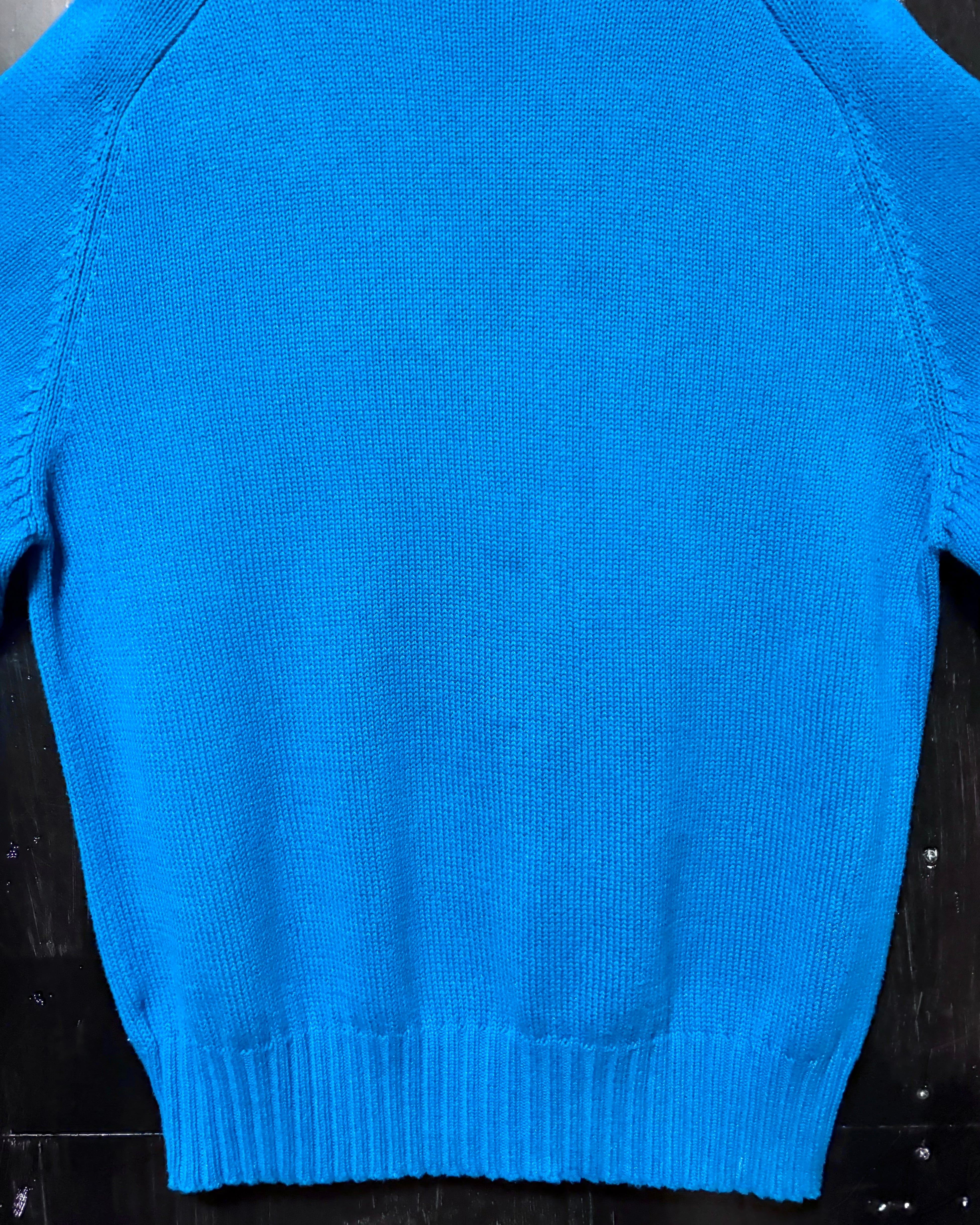 経年なりの着用感、全体的に薄っすら毛羽立ち、若干の色落ち〜色ムラ、首回りにわずかに薄汚れ、袖口の内側に一部汚れ、袖口内側の折り返し部に色落ちがございますが