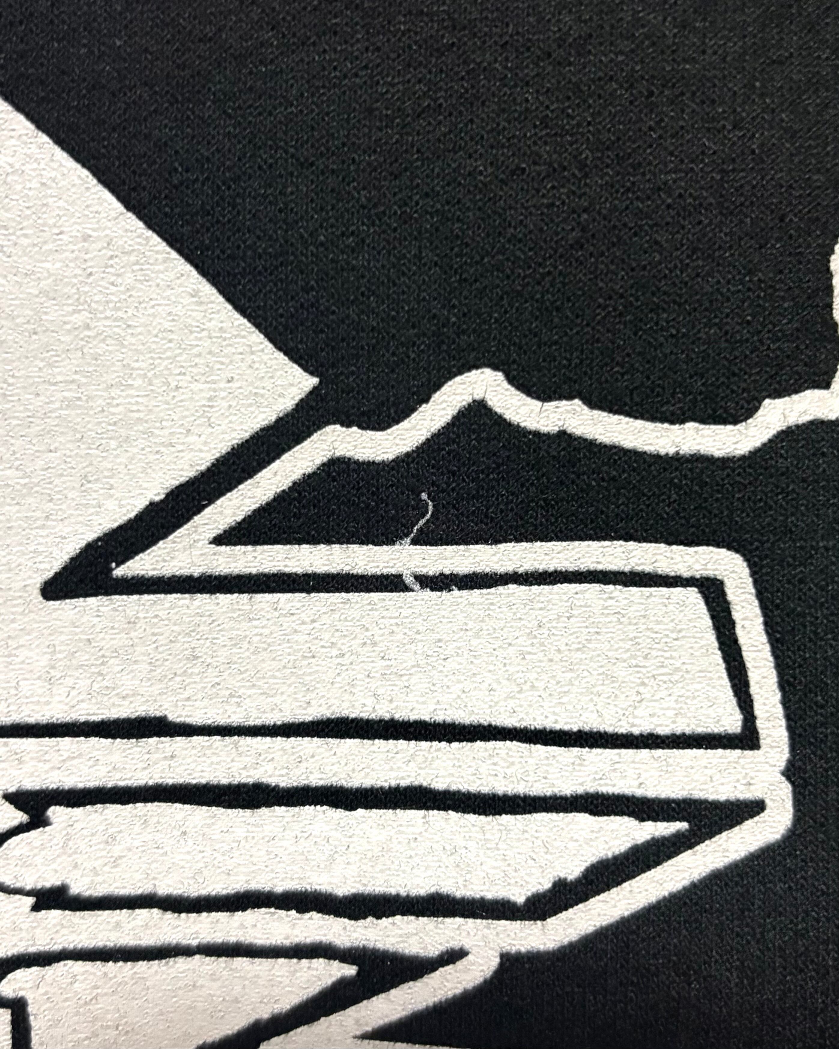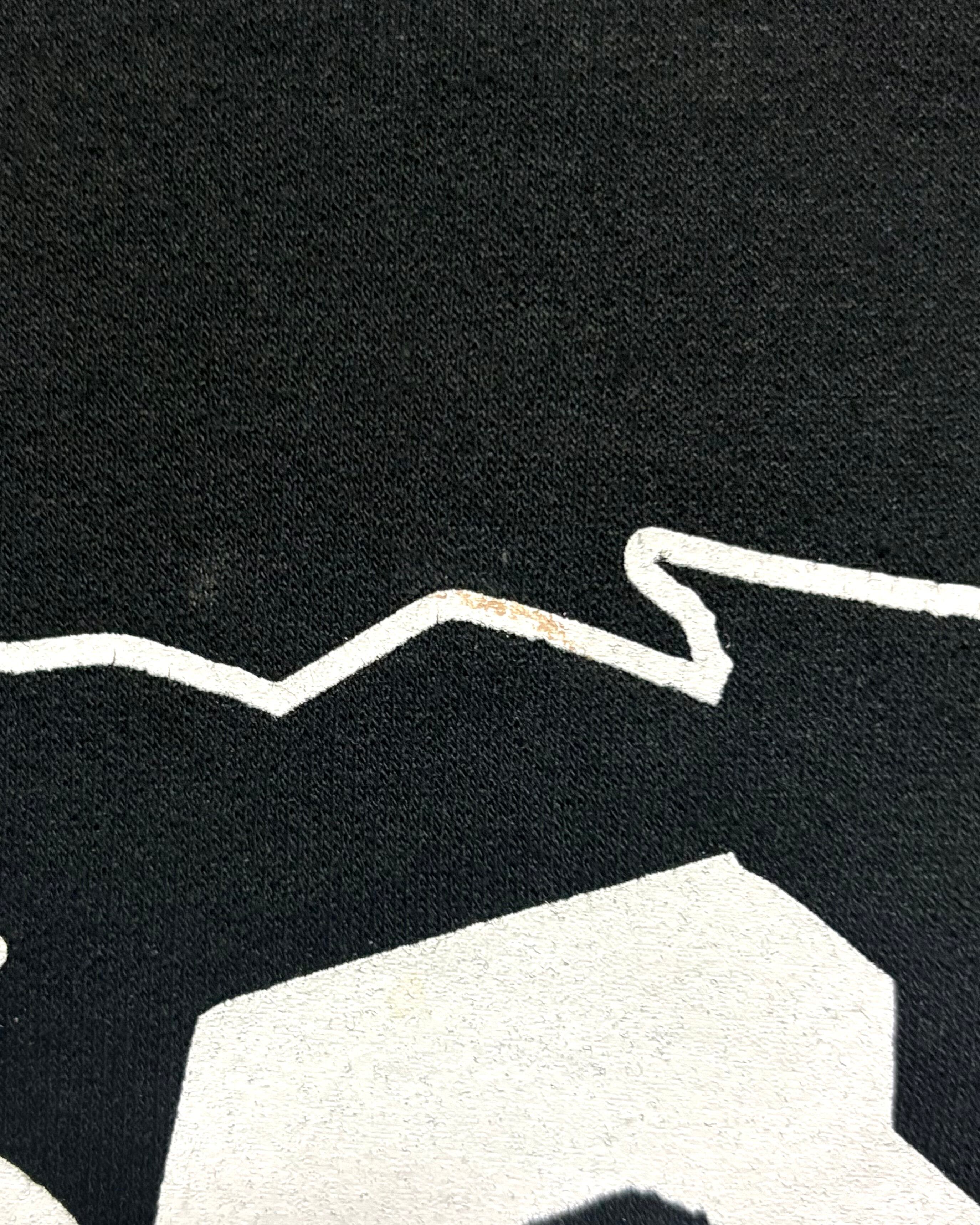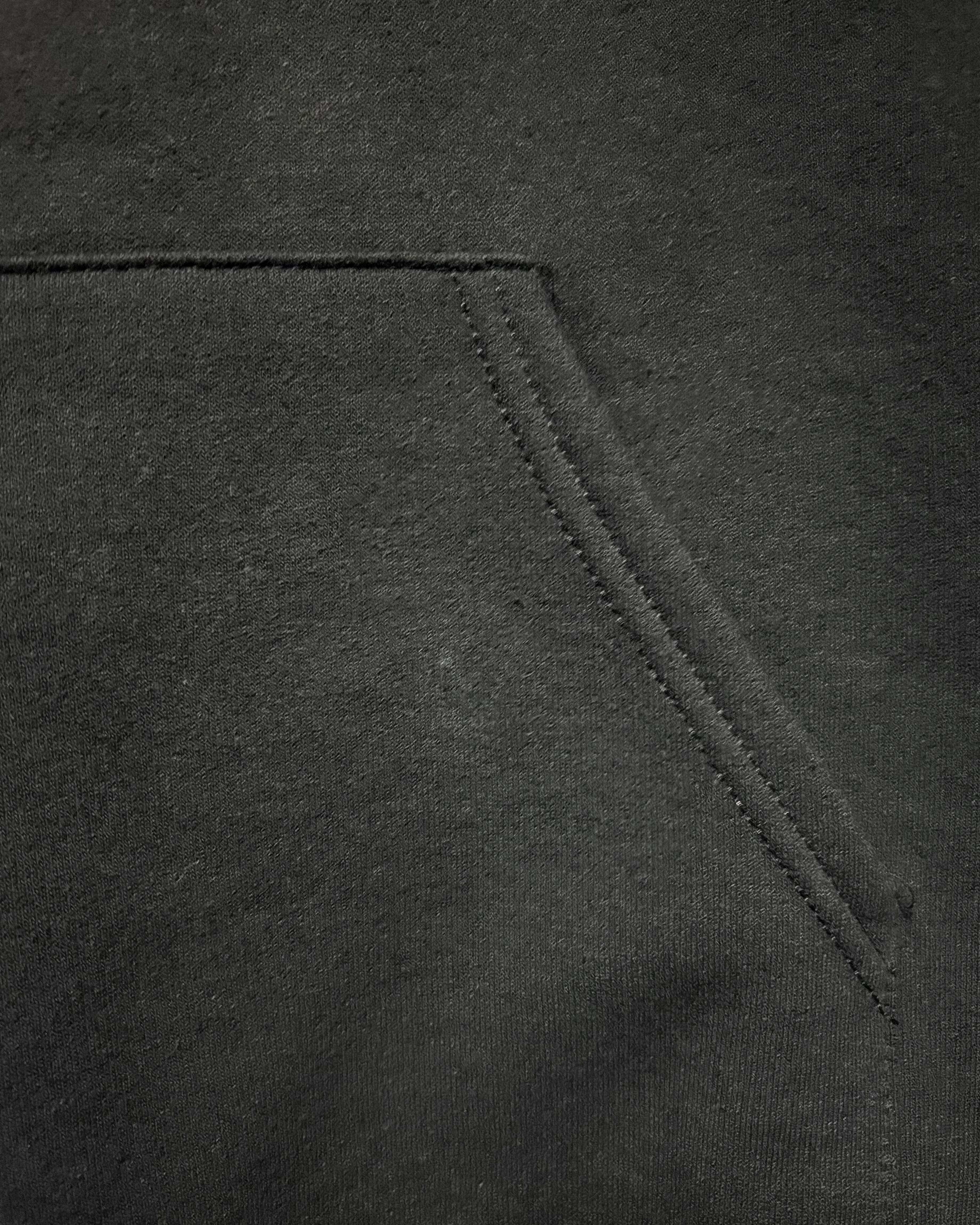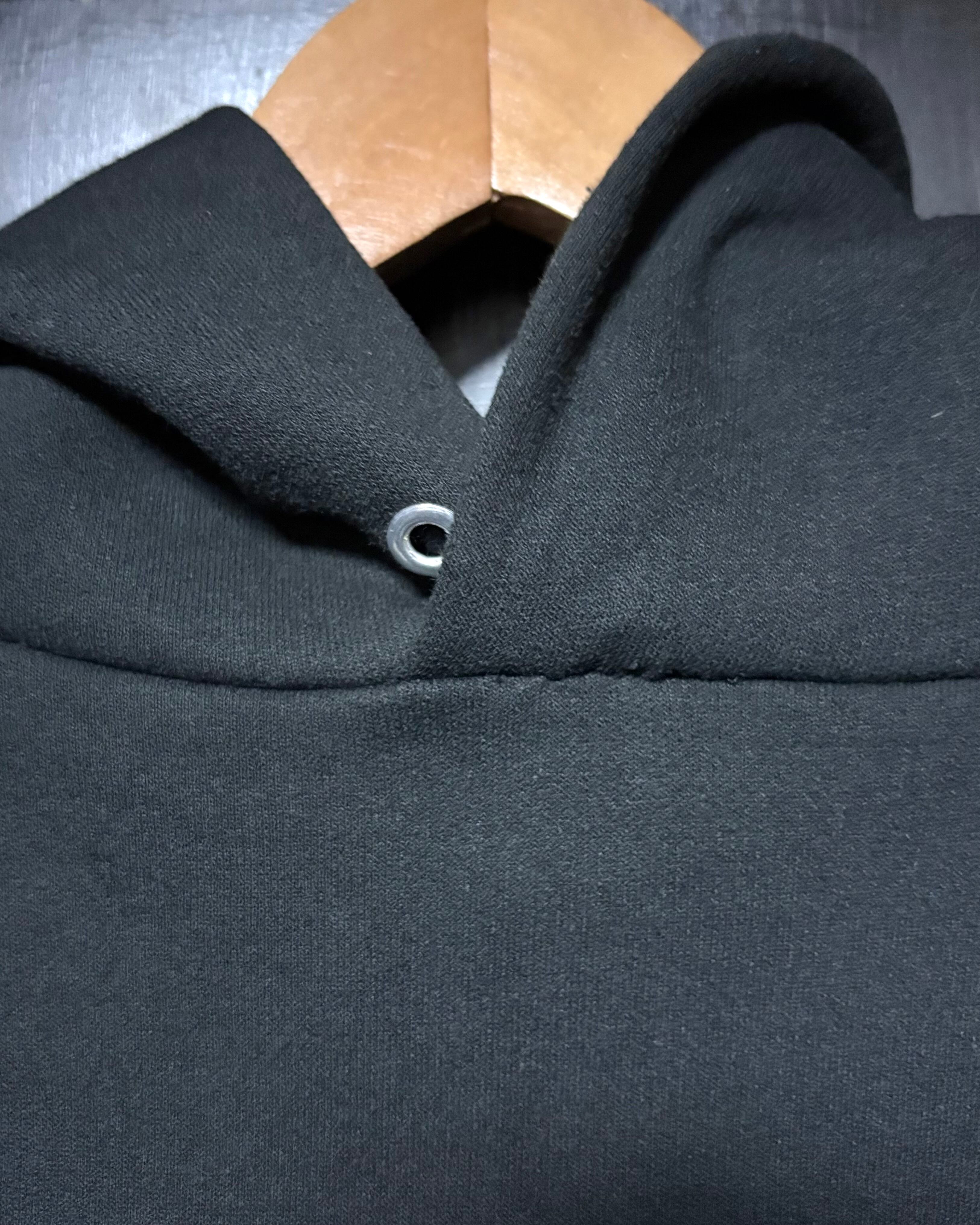 経年なりの着用感、ブラックボディ特有の色落ち〜色ムラ、フード中央の付け根付近にリペア、左ポケット口付近に薄汚れ、バックプリント上部付近に薄汚れがございますが