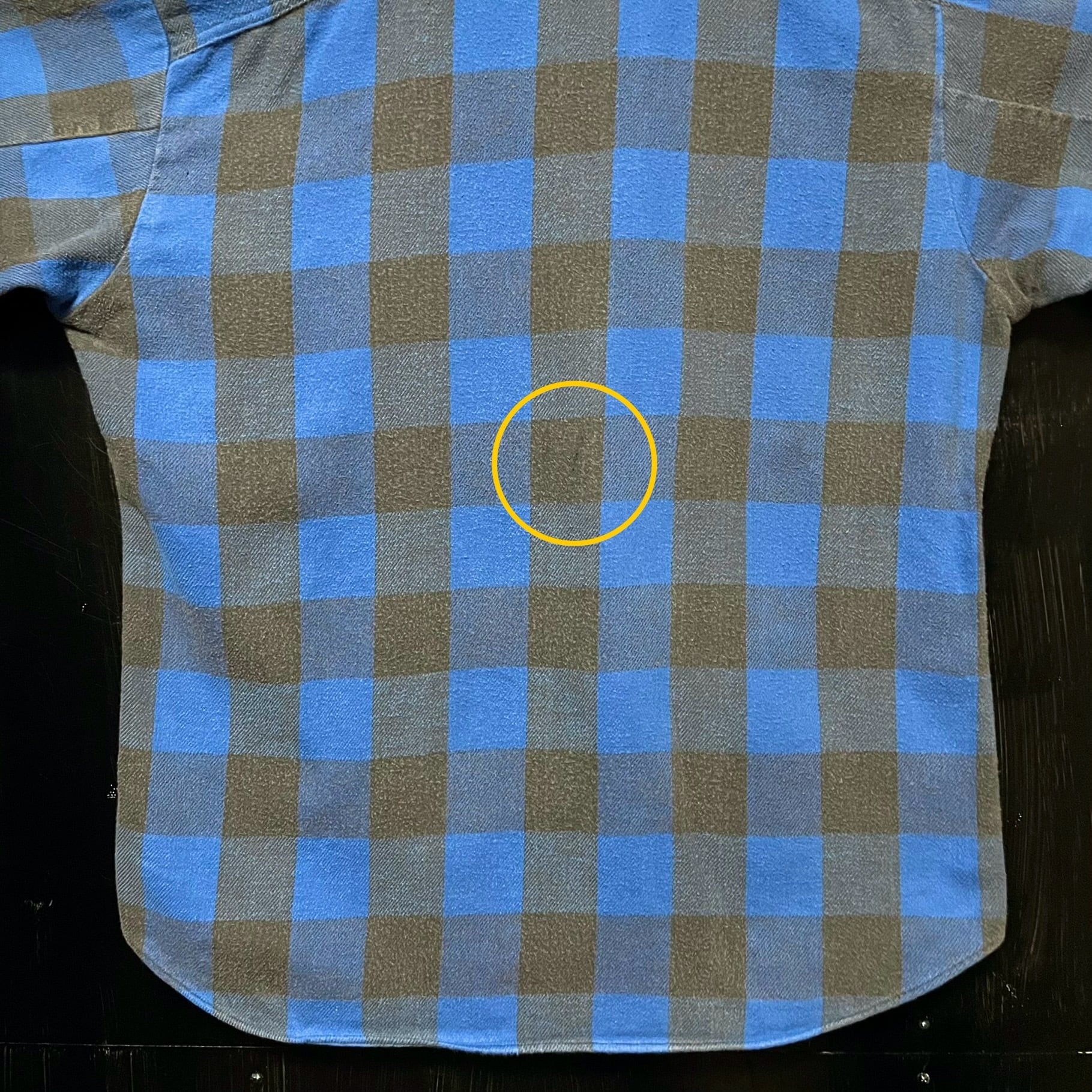 70年代頃製のビッグ・ヤンク、青黒バッファロー・ヘヴィ・フランネルシャツです。